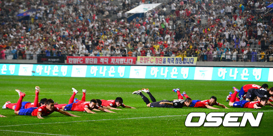 경기종료 후 2002 월드컵 선수들이 슬라이딩으로 팬들에게 인사를 하고 있다. / soul1014@osen.co.kr