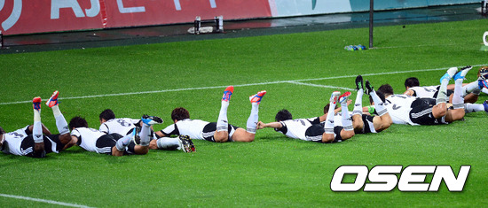 경기 전반 TEAM 2012가 슬라이딩 세리머니를 하고 있다. / baik@osen.co.kr
