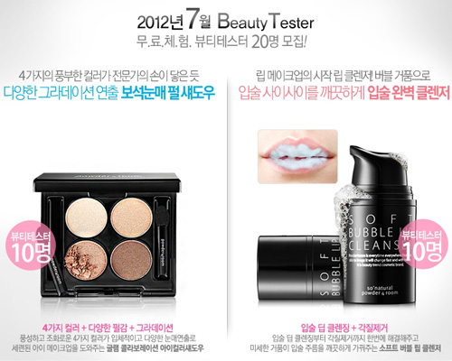 이번 뷰티 테스터는 4가지 컬러로 입체적인 눈매를 연출해주는 ‘글램 콜라보레이션 아이섀도’와 입술 딥 클렌징과 각질 제거를 한 번에 해주는 ‘소프트 버블 립 클렌저’ 두 가지 제품으로 진행될 예정이다.