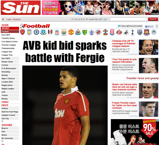 6일(이하 한국시간) 영국 매체 '더 선'은 안드레 빌라스-보아스 감독과 알렉스 퍼거슨 맨유 감독이 유망주를 놓고 전쟁을 벌이고 있다고 보도했다. 두 감독이 눈에 불을 켜고 다투고 있는 선수는 수비 유망주 프라이어스다.