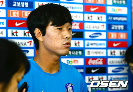7일 오후 경기도 파주 NFC에서 2012 런던올림픽 대표팀 공개 훈련에서 앞서 박주영이 인터뷰를 하고 있다