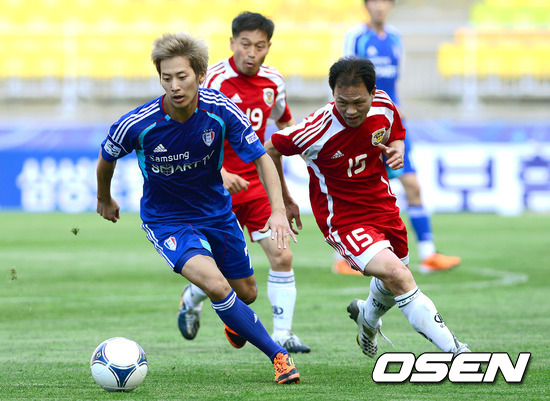 8일 오후 수원월드컵경기장에서 열린 연예인 축구팀 FC MEN과 매원 FC의 친선경기, 이완이 드리블을 하고 있다.