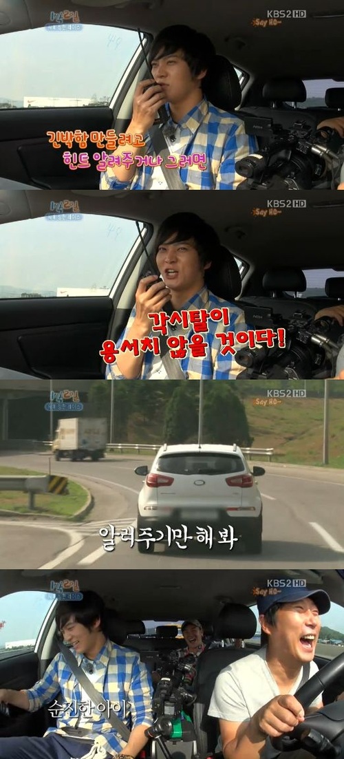 이수근, 엄태웅과 한 팀이 된 주원은 휴게소에서 미션을 수행하기 위해 이동했다. 이동 중 이수근이 주원에게 "스태프들에게 잘못하면 각시탈이 용서치 않겠다고 전해라"라고 했다.