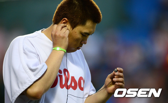 경기후 승리를 거둔 한화 류현진이 방송 인터뷰를 준비하고 있다. /jpnews@osen.co.kr