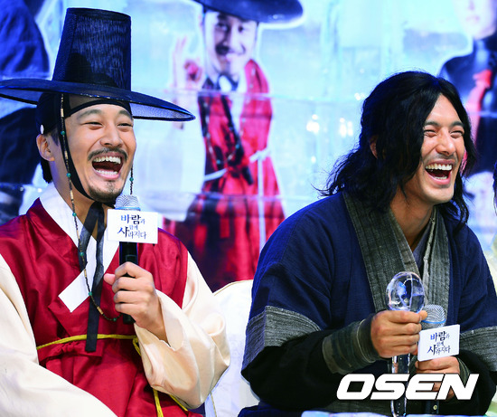 9일 오전 서울 강남구 논현동 임피리얼 팰리스 서울 두베홀에서 열린 영화 '바람과 함께 사라지다'의 제작보고회에서 차태현과 오지호과 환하게 웃고 있다.
