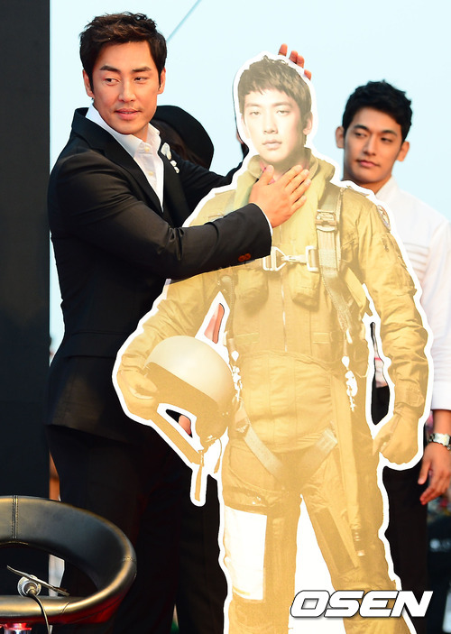 9일 저녁 서울 용산구 남산 N 시티에서 열린 영화 'R2B:리턴투베이스(김동원 감독, 이하 'R2B')'의 쇼케이스에서 김성수가 정지훈(비)의 포스터판을 들고 입장하고 있다.