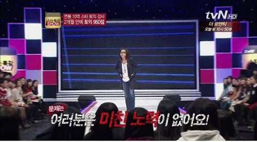 미친 듯이 공부하면 그 어떤 것도 가능하다는 증거로 이 수강생의 사례를 든 유수연 원장은 요즘 20대들은 모든 노력의 주기가 너무 짧다며 독설을 이었다. 노력을 내키는 대로, 간헐적으로, 두 달을 넘기지 못하니 제대로 되는 건 하나도 없는 것이다. 그래도 입은 살아서, 자신의 초라한 현실을 시대 탓, 사회 탓으로 돌리며 밤잠 못 이루는 게 요즘 청춘이라고 그녀는 말한다. 그녀는 청춘들에게 이렇게 외친다. “문제는 너 자신이야!”라고.