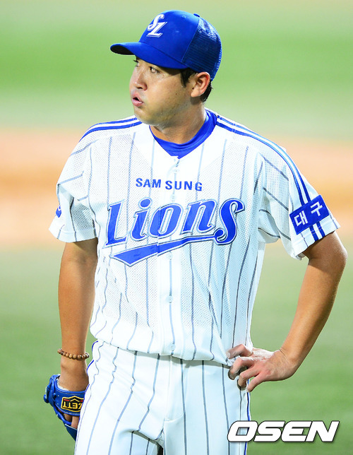 10일 오후 대구 시민구장에서 열린 '2012 팔도 프로야구' 삼성 라이온즈와 LG 트윈스의 경기에서 2회초 2사 주자 2,3루 LG 김일경에게 2타점 적시타를 맞으며 동점을 허용한 삼성 장원삼이 한숨을 쉬고 있다.