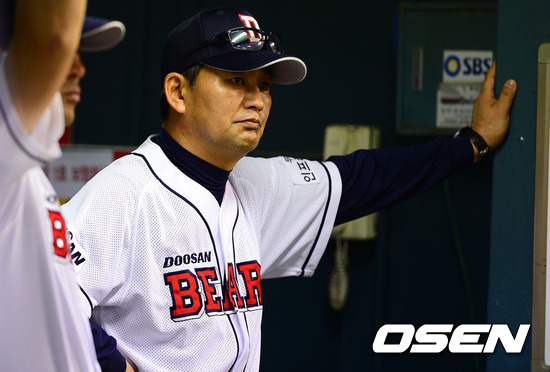 10일 오후 서울 잠실구장에서 열린 2012 팔도 프로야구 두산 베어스와 한화 이글스의 경기 5회말 1사 만루에서 두산 김진욱 감독이 심각한 표정으로 경기를 지켜보고 있다.