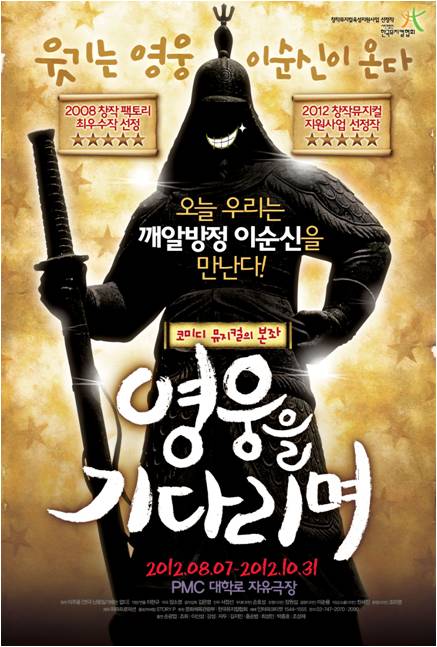 뮤지컬 '영웅을 기다리며'는 카리스마 명장 이순신이기 보다는 '인간' 이순신의 모습에 주목, 난중일기에 없는 3일을 코믹하게 재구성한 작품이다. 2008년 창작팩토리 우수 뮤지컬 제작지원 최우수작으로 선정 돼 2009년 초연 됐으며, 2012년 올해의 창작 뮤지컬 지원작으로 선정 되기도 했다.