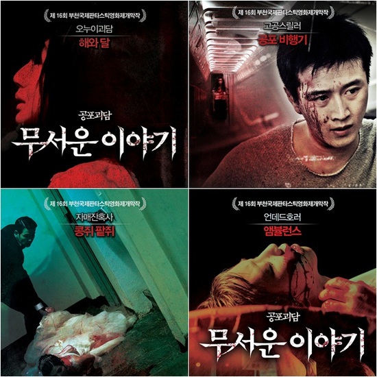 전래동화 '콩쥐, 팥쥐'에서 모티브를 얻은 세 번째 이야기 '콩쥐, 팥쥐' 포스터에는 피에 젖은 웨딩드레스를 입은 채 누군가에게 끌려가는 신부의 처참한 모습이 담겨 있어 또 다른 스토리에 대한 궁금증을 유발시키고 있다.