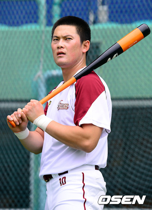 11일 오후 인천 문학구장에서 열리는 2012 팔도 프로야구 SK 와이번스와 넥센 히어로즈의 경기전 넥센 이성열이 타격 연습을 하고 있다