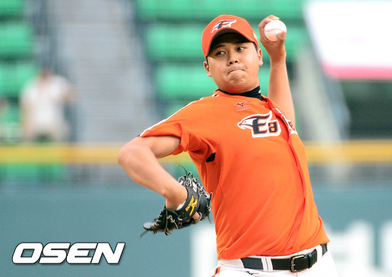 11일 오후 서울 잠실야구장에서 열린 '2012 팔도 프로야구' 두산 베어스와 한화 이글스 경기, 1회말 한화 선발투수 유창식이 힘차게 공을 던지고 있다.