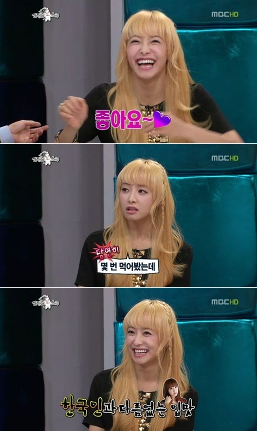 빅토리아는 11일 오후 방송된 '라디오스타'에서 김치는 물론이고, 된장, 청국장, 곱창, 닭발 등 못 먹는 음식이 없다고 밝혀 눈길을 끌었다.