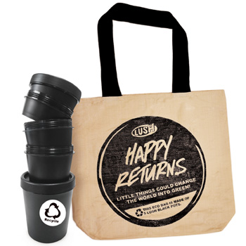영국 화장품브랜드 '러쉬'는 7월 1일부터 31일까지 라벨을 제거한 빈 제품 용기 ‘블랙 팟 (Black Pot: 검정 제품 용기)’ 5개를 매장으로 가져오면 에코백으로 교환해주는 캠페인을 진행 중이다.