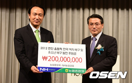 농협중앙회는 2004년 이후 8년만에 올림픽 출전권을 획득한 여자배구대표팀의 선전과 메달획득을 기원함과 더불어 대한민국 유소년 배구의 저변확대와 발전을 위해 거금을 기탁한 것으로 알려져 있다.