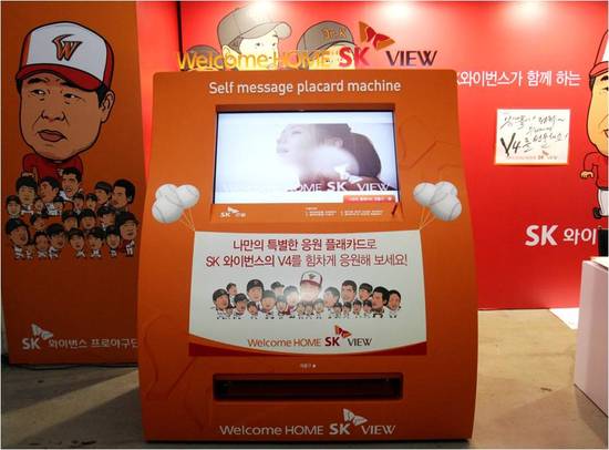 SK 와이번스는 13일 문학야구장 1루 1층 복도에 신개념 응원도구 제작기계인 '응원플래카드 자판기'를 설치했다.