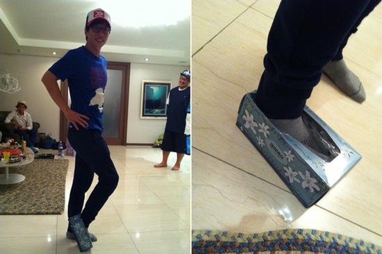 하하는 지난 12일 오후 자신의 트위터에 "주나형이 재석형을 끔찍히 여겨 선물해 준 최신형 신발! 에어조던도 울고 갈 에어넥스!"라는 글과 함께 사진을 게재했다.