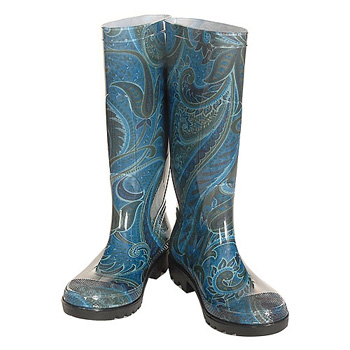 비오는 날 우아하고 도도한 여성이 되고 싶다면 페이즐리의 패턴이 프린팅된 레인부츠를 선택해볼 수 있다. 스타일링은 숏 팬츠와 가장 잘 어울리며, 이러한 룩은 활동성을 높이면서 다리를 길어보이게 한다.