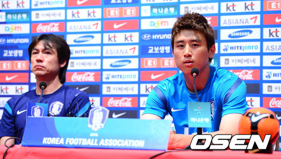 뉴질랜드와 평가전을 하루 앞둔 홍명보호가 13일 파주 트레이닝센터(NFC)에서 기자회견을 가졌다. 이날 기자회견에는 홍명보 감독과 주장 구자철(아우크스부르크)이 참석했다.