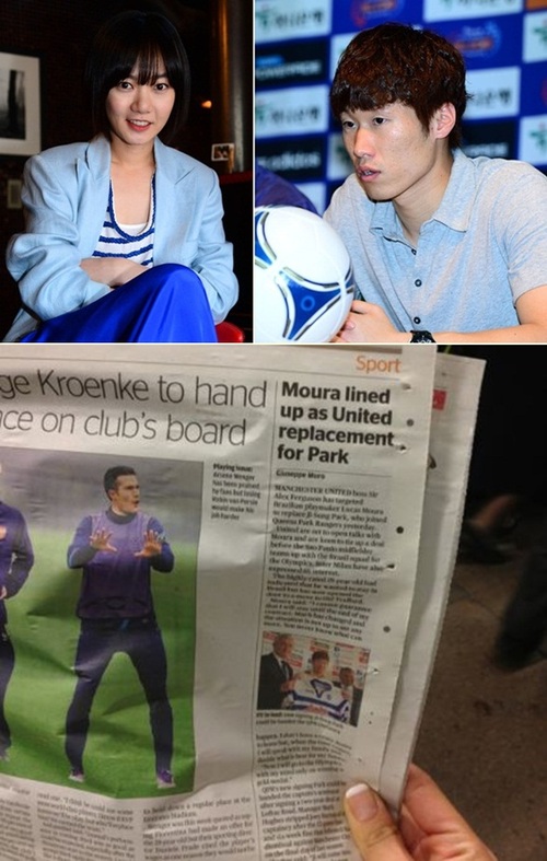 잉글랜드 프리미어리그 퀸스파크레인저스(QPR)로 이적한 박지성과 배우 배두나가 최근 런던에서 만났다는 목격담이 14일 온라인 커뮤니티를 통해 급속도로 퍼지고 있다.