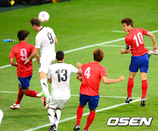 14일 오후 서울월드컵경기장에서 열린 올림픽 축구대표 뉴질랜드와의 평가전 후반 구자철이 헤딩슛을 시도하고 있다.