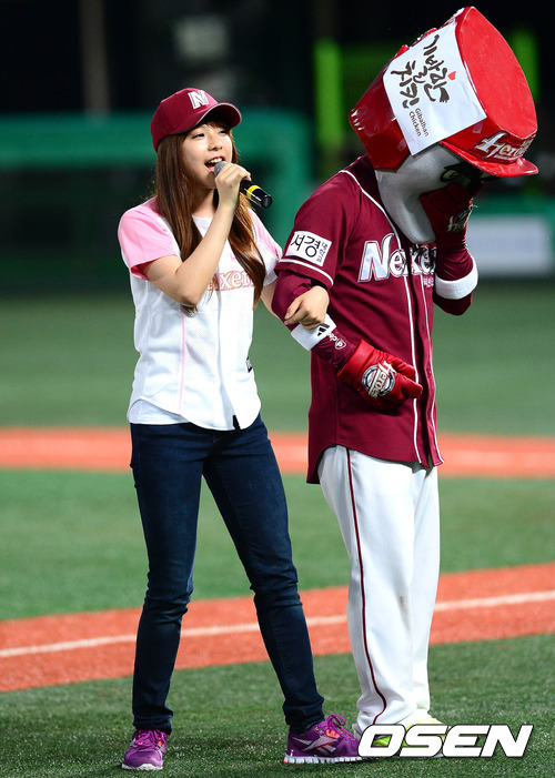 17일 오후 서울 목동구장에서 열린 '2012 팔도 프로야구' 넥센 히어로즈와 롯데 자이언츠의 경기, 주니엘이 축하공연을 하고 있다.