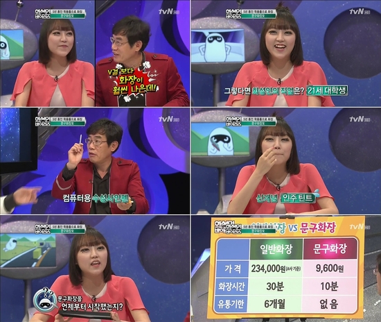 ‘화성인 바이러스’ 제작진이 준비한 자료에 따르면 일반 화장품으로 메이크업 도구를 준비할 경우 23만 4000원이 필요한 반면 문구화장은 9600원으로 초호화 세트 마련이 가능했다. 화장시간도 일반 화장이 30분 정도 소요된 반면 문구 화장은 10분 정도가 걸렸다.