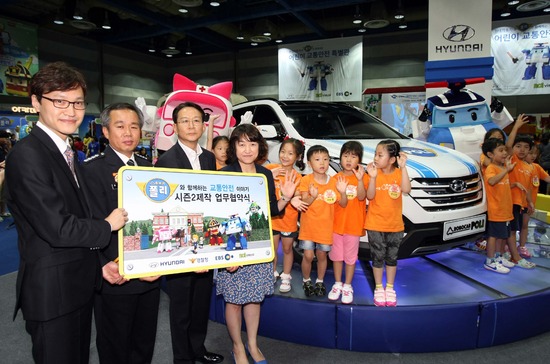 현대자동차(회장 정몽구)는 18일 서울 코엑스에서 열린 ‘서울 캐릭터•라이선싱 페어 2012' 개막식에 맞춰 '폴리와 함께하는 교통안전 이야기- 시즌2' 제작을 위한 업무협약식을 가졌다. 현대차, 경찰청, EBS(로보카폴리 원작사), 로이비쥬얼이 이번 프로젝트의 핵심 주체들이다.