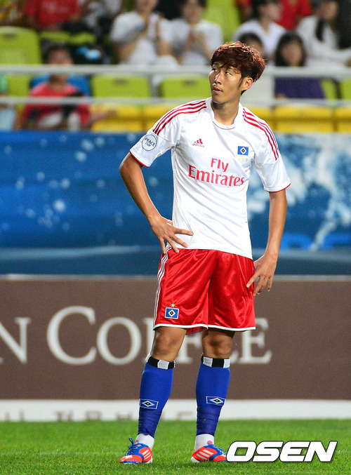 20일 오후 수원월드컵경기장에서 열린 '2012 피스컵 수원' 2차전 함부르크 SV와 FC 흐로닝언의 경기, 후반 함부르크 손흥민이 슛이 골문을 벗어나자 아쉬워하고 있다.