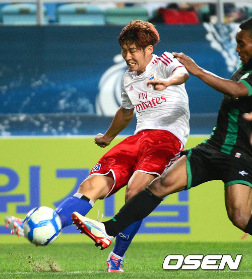 20일 오후 수원월드컵경기장에서 열린 '2012 피스컵 수원' 2차전 함부르크 SV와 FC 흐로닝언의 경기, 후반 함부르크 손흥민이 크로스를 시도하고 있다.