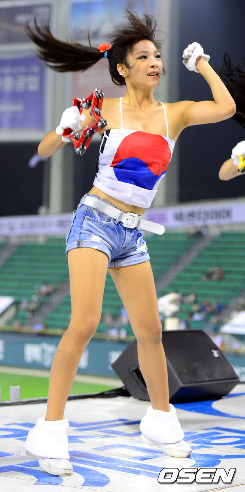 20일 오후 서울 잠실구장에서 열린 '한일 프로야구 레전드 매치 2012' 경기, LG 치어리더 강윤이가 멋진 공연을 펼치고 있다.