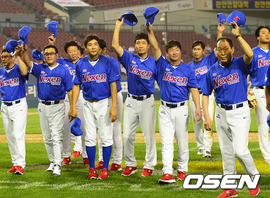 경기종료 후 한국 레전드 선수들이 팬들에게 인사를 하고 있다 ./ soul1014@osen.co.kr