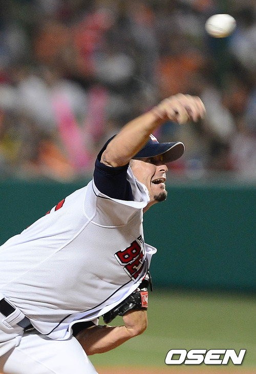 21일 오후 대전 한밭야구장에서 열린 '2012 팔도 프로야구 올스타전' 경기 7회초 프록터가 역투하고 있다.