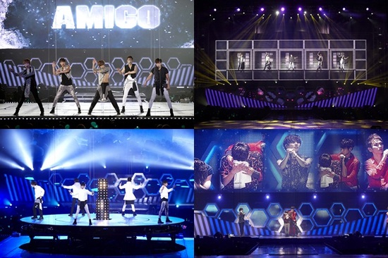 우주복을 연상케 하는 의상을 입은 샤이니는 ‘루시퍼’에 이어 '아미고', '줄리엣', '더 샤이니월드', '어웨이즈 러브', '헬로', '누난 너무 예뻐'로 쉴새 없는 퍼포먼스 향연을 펼쳐 관객들을 열광케 했다. 멤버들은 ‘줄리엣’ 무대에서 와이어에 몸을 싣고 날개를 펼쳐 관객에게 지루할 틈을 주지 않았다.