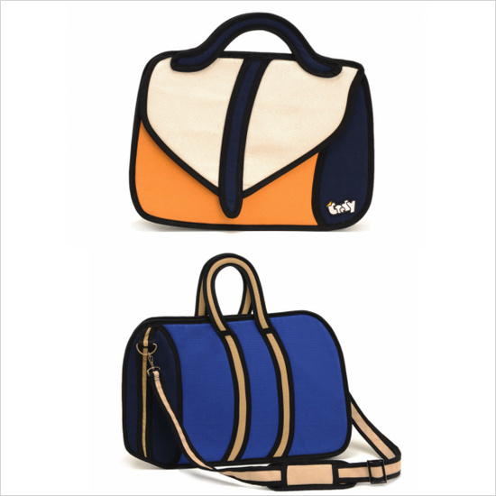 얼핏 보면 2차원 일러스트레이션처럼 보이는 특이한 디자인의 가방은 새롭고 유쾌하면서도 실용적이다. 토트백, 크로스백, 백팩, 아이패드, 노트북 케이스 등 다양한 제품이 나와 있다.