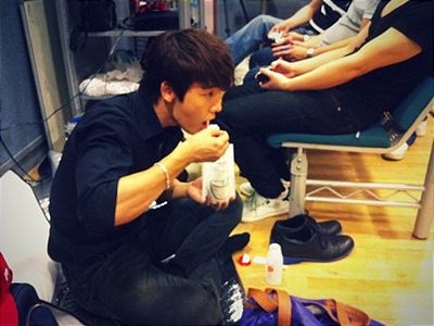 공개된 사진 속에는 동해가 날바닥에 앉아 무언가를 먹고 있다. 구두를 옆에 가지런히 벗어 놓고 앉아 있는 동해는 조각 같은 옆선을 뽐내 눈길을 끌었다.