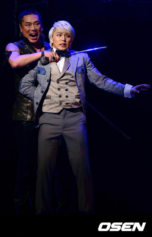 뮤지컬 '잭더리퍼' 프레스콜이 25일 서울 국립극장 해오름극장에서 열린 가운데 슈퍼주니어 성민과 김법래가 열연을 펼치고 있다.