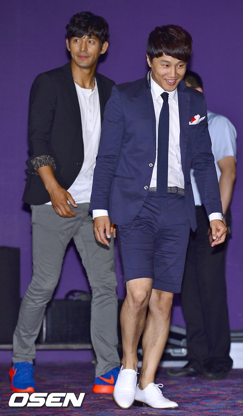 25일 오후 서울 코엑스 메가박스에서 열린 영화 '바람과 함께 사라지다'(감독 김주호)의 언론시사회에서 배우 오지호와 차태현이 입장하고 있다