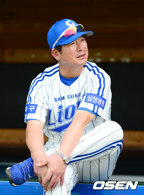 26일 오후 대구야구장에서 열린 '2012 팔도 프로야구' 삼성 라이온즈와 SK 와이번스의 경기에 앞서 삼성 류중일 감독이 취재진과 이야기를 나누고 있다.