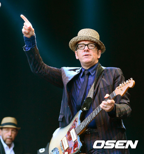 27일 경기 이천시 지산포레스트리조트에서 열린 2012 지산밸리 록 페스티벌에서 엘비스 코스텔로가 기타연주를 하고 있다.