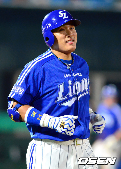 27일 서울 목동구장에 열린 '2012 팔도 프로야구' 넥센 히어로즈와 삼성 라이온즈의 경기, 8회초 2사 1,2루 삼성 이승엽이 중견수 플라이 아웃으로 이닝이 끝나자 아쉬운 표정을 짓고 있다.