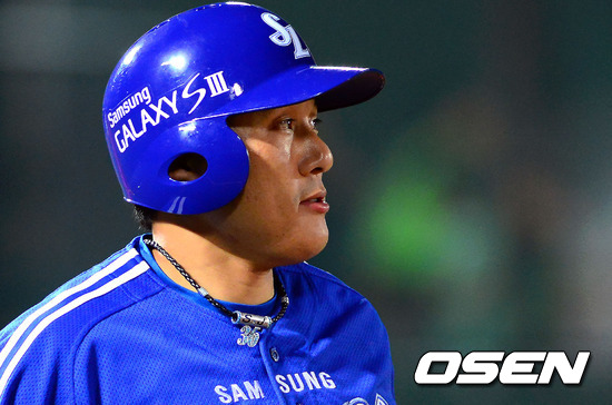 27일 서울 목동구장에 열린 '2012 팔도 프로야구' 넥센 히어로즈와 삼성 라이온즈의 경기, 8회초 2사 1,2루 삼성 이승엽이 중견수 플라이 아웃으로 이닝이 끝나자 아쉬운 표정을 짓고 있다.