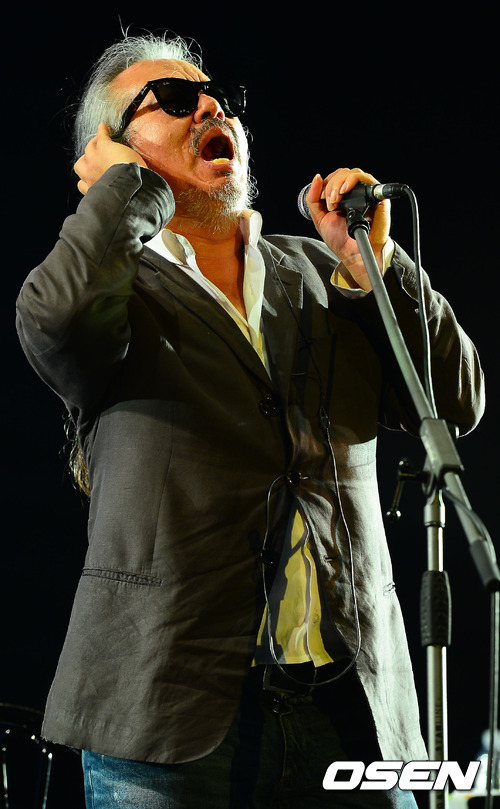 27일 경기 이천시 지산포레스트리조트에서 열린 2012 지산밸리 록 페스티벌에서 전인권이 열창을 하고 있다.
