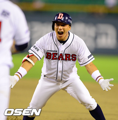 9회말 2사 1,2루 두산 이종욱이 끝내기 안타를 날리고 환호하고 있다 /soul1014@osen.co.kr