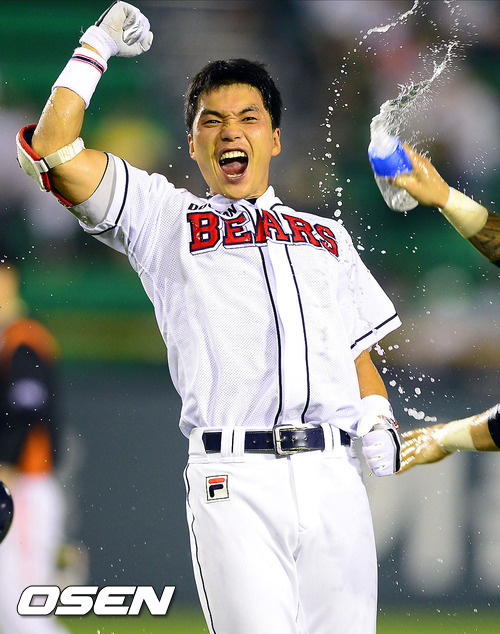 9회말 2사 1,2루 두산 이종욱이 끝내기 안타를 날리고 환호하고 있다 /soul1014@osen.co.kr