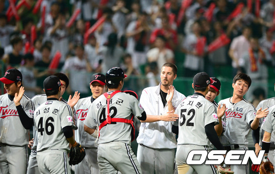 경기 종료 후 LG 선수들이 승리의 기쁨을 나누고 있다. / sunday@osen.co.kr