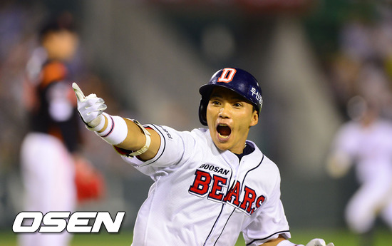 9회말 2사 1,2루 두산 이종욱이 끝내기 안타를 날리고 환호하고 있다. /soul1014@osen.co.kr