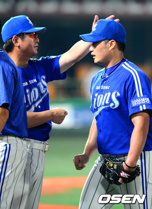 경기 종료 후 삼성 류중일 감독이 오승환을 격려하고 있다. / youngrae@osen.co.kr