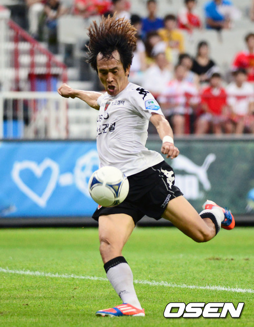 29일 오후 부산 아시아드 주경기장에서 열린 '현대오일뱅크 K리그 2012' 24라운드 부산 아이파크-포항 스틸러스 경기 전반, 포항 노병준이 슈팅을 시도하고 있다.